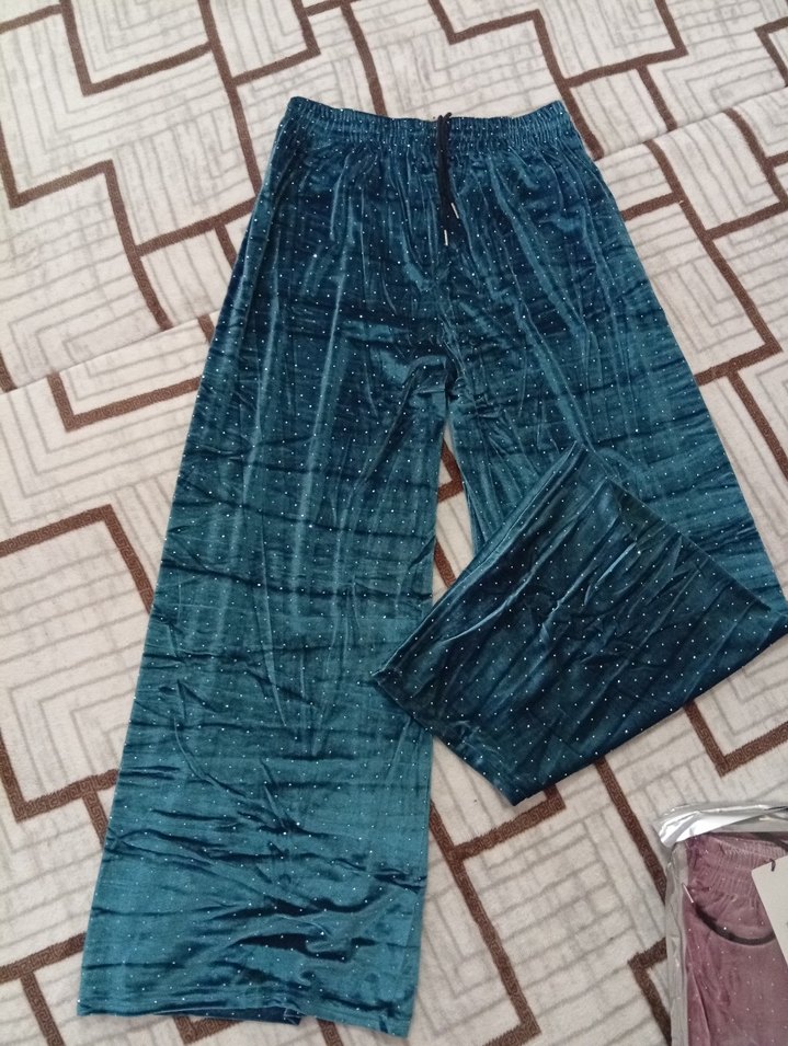 Parlak mavi sentetik kumaştan, bol kesim ve pile detaylı uzun kadın pantolonu. Rahat ve bohem tarzıyla günlük kullanıma uygundur. ✨