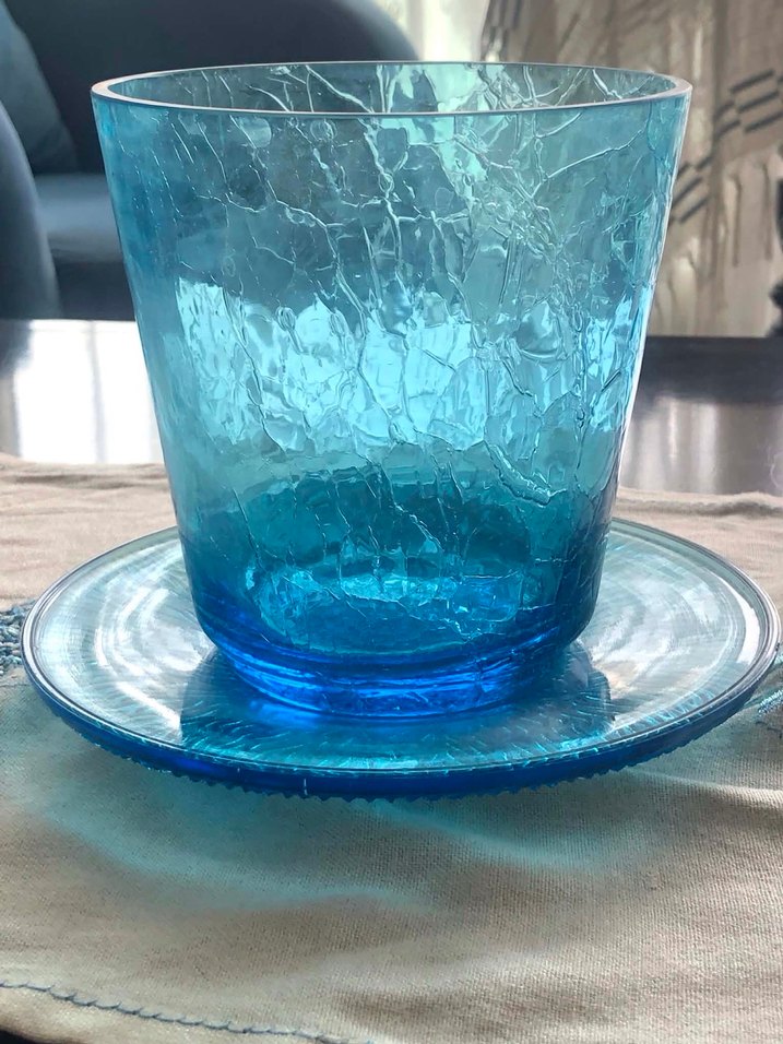 Parlak Mavi Cam Çatlatma Saksı ve tabağı