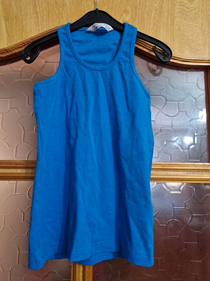 Parlak mavi renkte, desen içermeyen, yumuşak kumaştan çocuk atlet. Kolsuz tasarımıyla rahat kullanım sağlar.