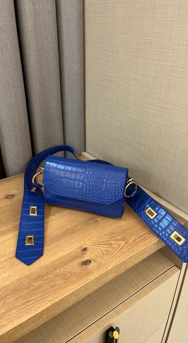 Parlak Mavi Deri Kadın Çanta