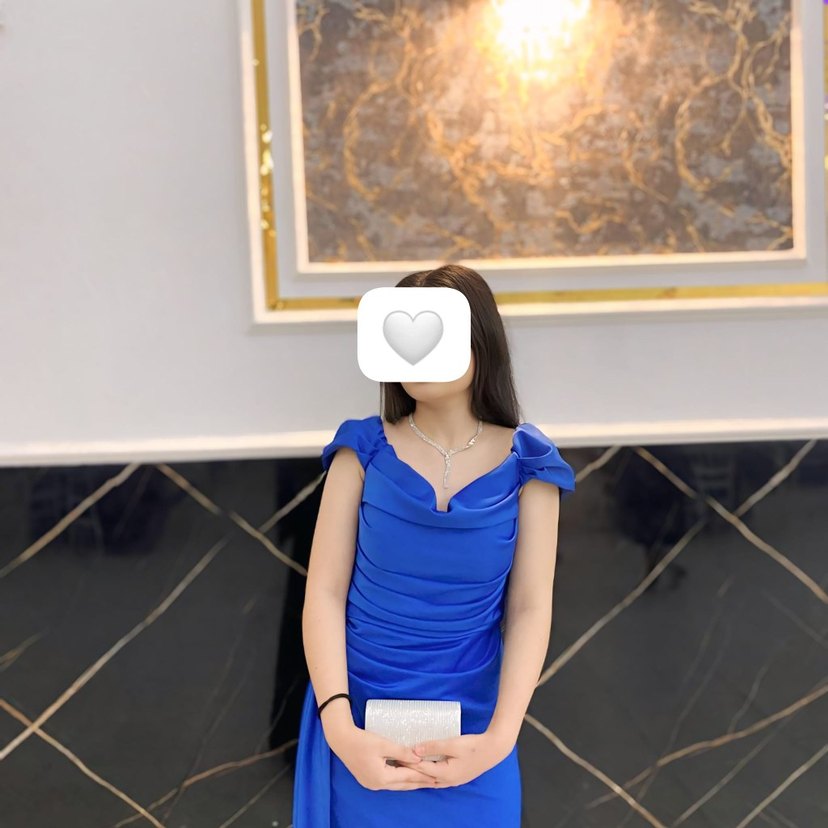 Parlak Mavi Drapeli Midi Abiye Elbise