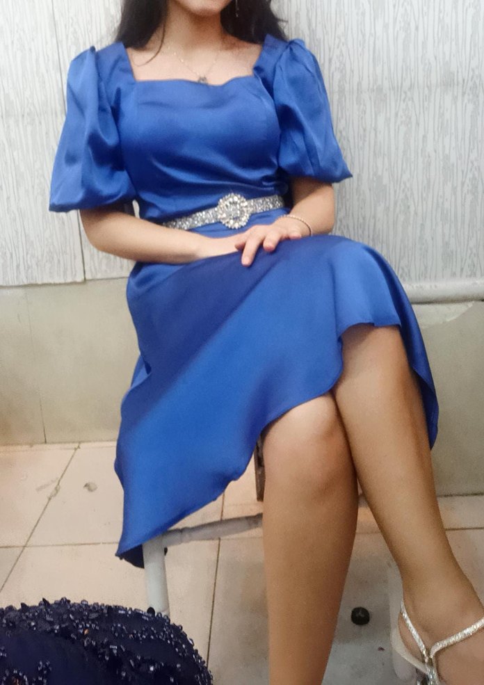 Parlak Mavi Drapeli Midi Abiye Elbise