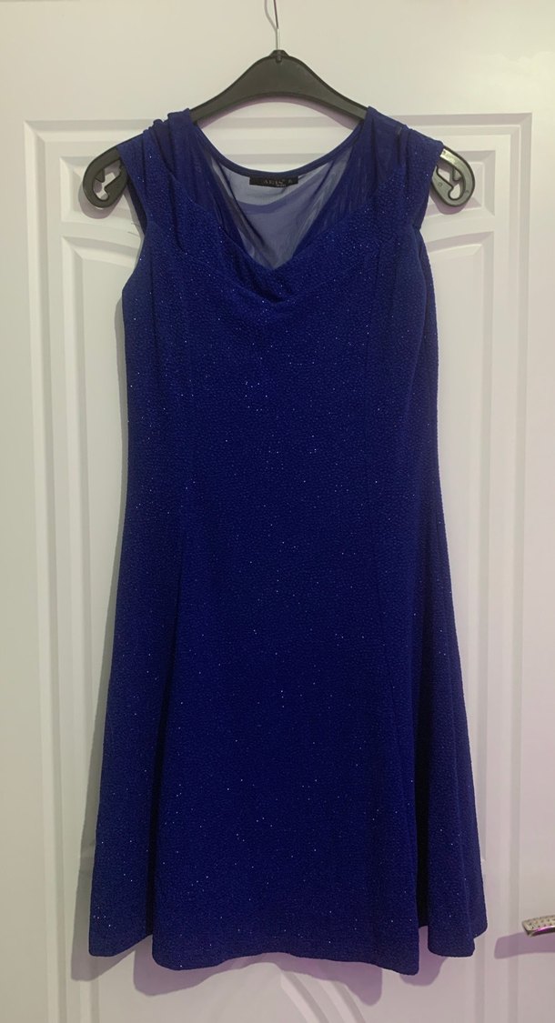 Parlak Mavi Drapeli Midi Abiye Elbise