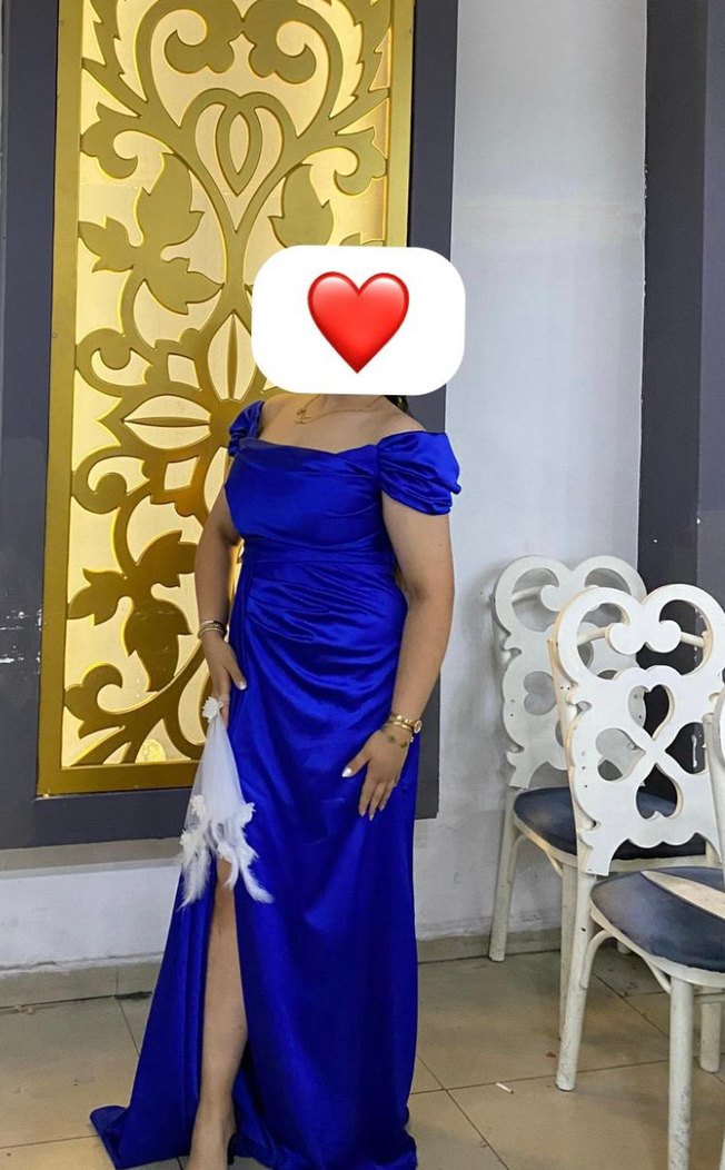 Parlak mavi renkte, drapeli ve straplez uzun abiye elbise. Modern klasik tarzda, dar kesim ve desenli kumaşla şık bir görünüm sunar.