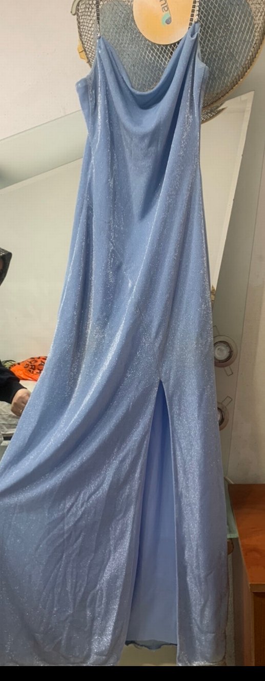 Parlak mavi uzun kumaştan, drapeli ve straplez kesimli, vücuda oturan bu abiye elbise, düğün ve gösterişli etkinlikler için uygun. ✨