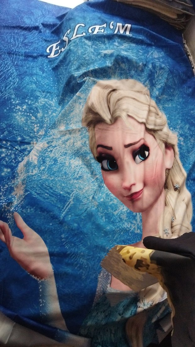 Parlak mavi renkte, sarı saçlı ve mavi gözlü Elsa figürlü yatak örtüsü ve yastık kılıfı ❄️İsimli olduğu için uygun fiyatlı Ölçüler 1.45*2.20