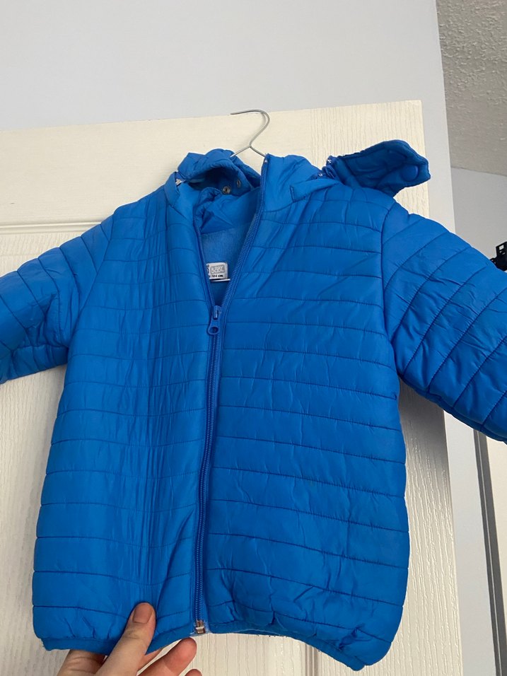 Parlak mavi renkte, fermuarlı ve kesimli bir erkek çocuk montudur. Yumuşak ve sıcak tutan kumaştan, düz ve sokak modası tarzındadır.