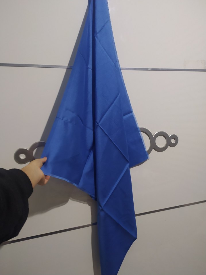 Parlak mavi eşarp.Bir yerinde çekilme var resimde belirttim ve iğne izleri var.