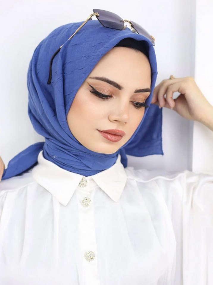 Parlak Mavi İpek Görünümlü Kadın Şal