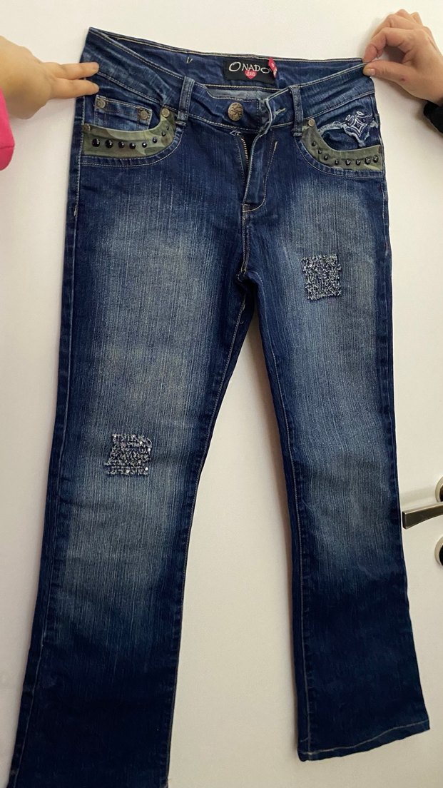 Parlak mavi denim kumaştan vintage pantalon s beden defosuzdur yurtdışı ürünüdür