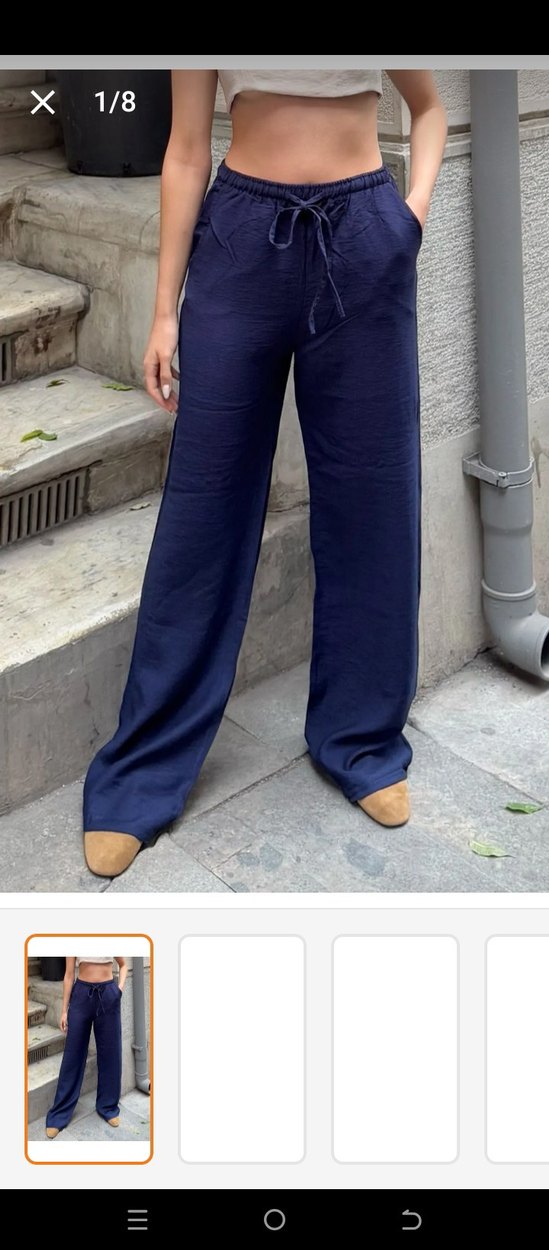 Parlak mavi kumaştan, rahat kesimli ve uzun boylu kadın pantolonu. Yumuşak sentetik kumaşıyla gündelik sokak tarzına şıklık katar. M bedendir s içinde uygun.