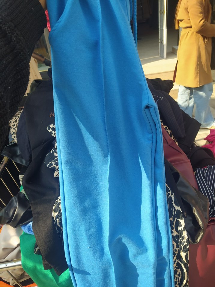 Parlak Mavi Kadın Kumaş Pantolon bol paça