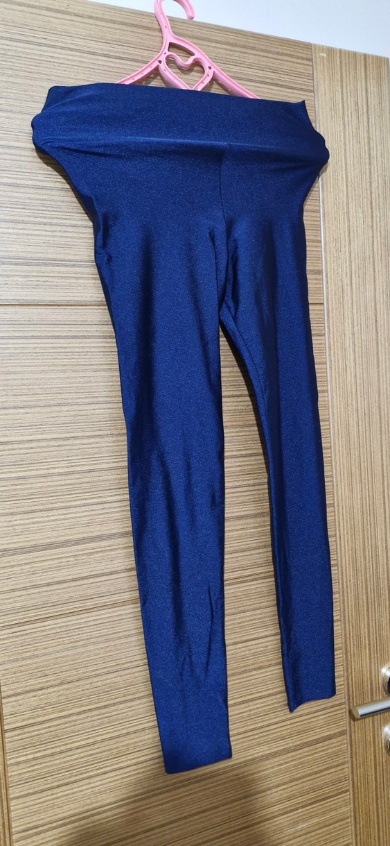 Parlak mavi renkte, elastik kumaştan yapılmış, midi boy kadın spor taytı. Spor ve günlük sokak stili için uygundur. Düz ve sıkı kesimdir. ♀️