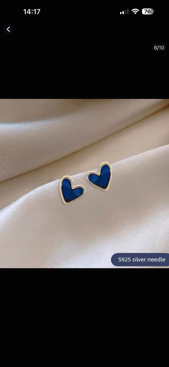 Parlak mavi kalp şekilli küpe