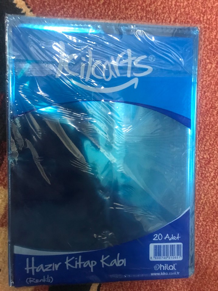 Parlak mavi renkte, pürüzsüz yüzeye sahip 20 adet kaplık. Üzerinde '@hilal' ve 'Hazir Kitap Kabi' yazısı bulunur