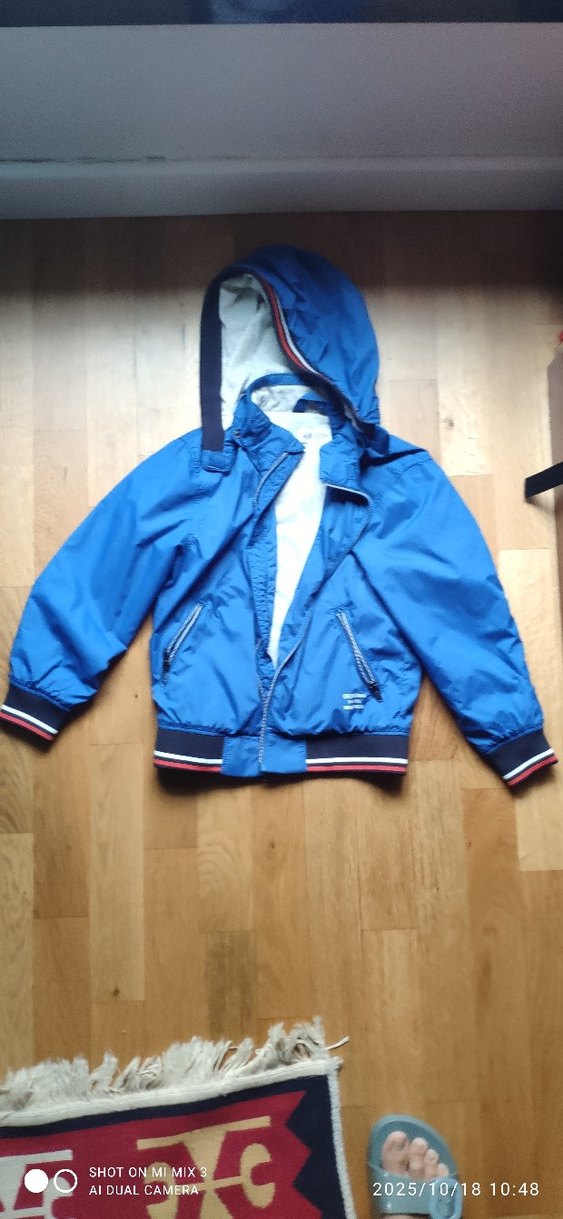 Parlak mavi renkte, kapüşonlu ve fermuarlı cepleri olan, kesimli erkek çocuk ceketi. Yumuşak ve sıcak astarlı, modaya uygun rahat stil için uygundur.