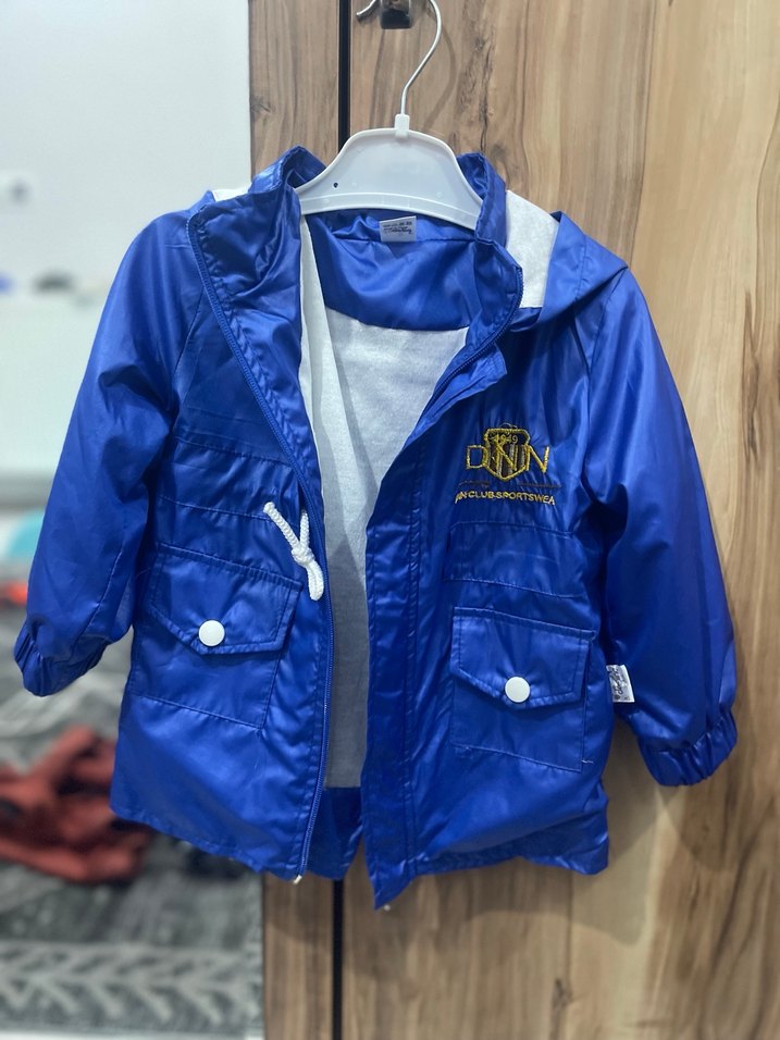 Parlak Mavi Kapüşonlu Erkek Çocuk Ceketi