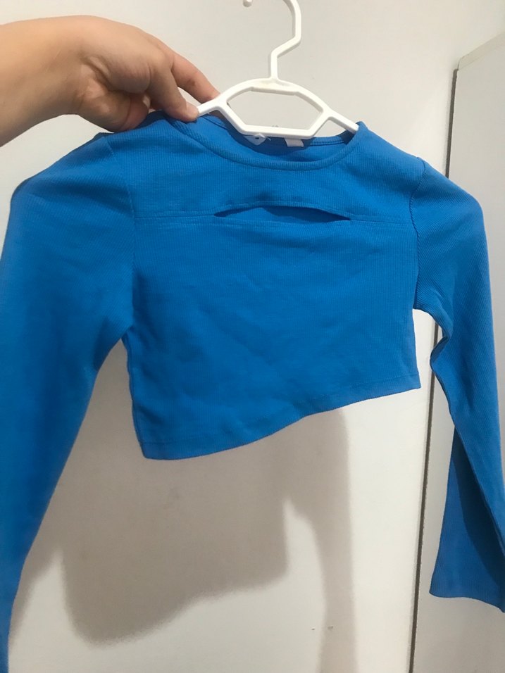 Parlak mavi renkte, yaka detaylı ve uzun kollu, yumuşak ve sıcak kumaştan yapılmış, fitted kesim kız bolero. ✨7-8 yaş uyumlu crop