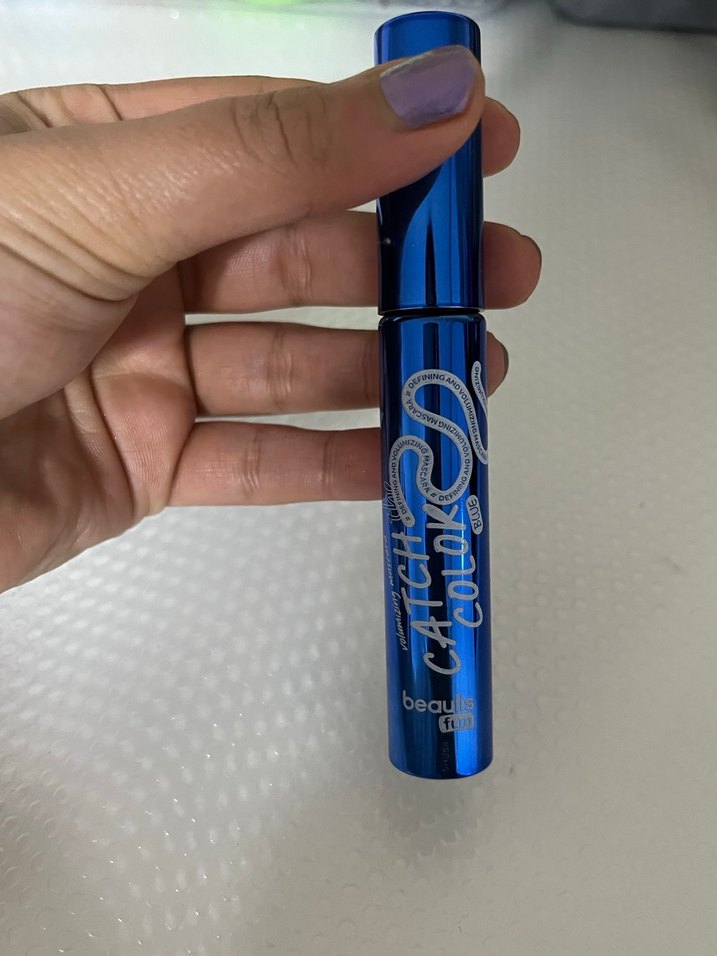 Parlak mavi renkte, kirpikleri belirginleştiren şık tasarımlı maskara.