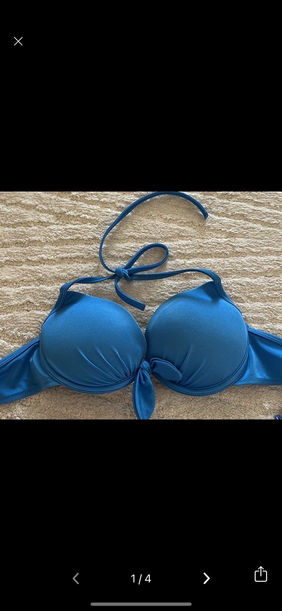Parlak mavi renkte, minimal desenli bikini üstü. Boyun ve ön kısmında bağlama detaylarıyla bohem tarz sunar. zara bikini mango bikini bershka bikini stradivarius bikini h&m bikini yeni sezon bikini yaz 2025 plaj modası trend mayo çizgili bikini üçgen bikini yüksek bel bikini askılı mayo desteksiz bikini cup bikini havuz için ideal deniz kıyafeti tatil bavulu