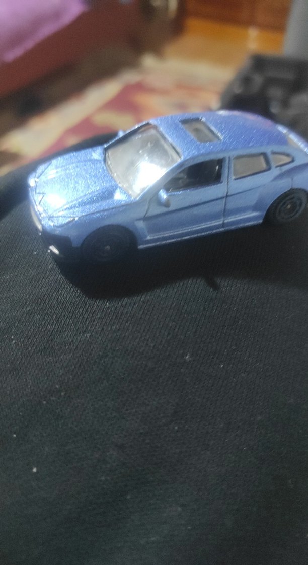 Detaylı cam ve tekerleklere sahip parlak mavi oyuncak araba, oyun veya koleksiyon için uygun.