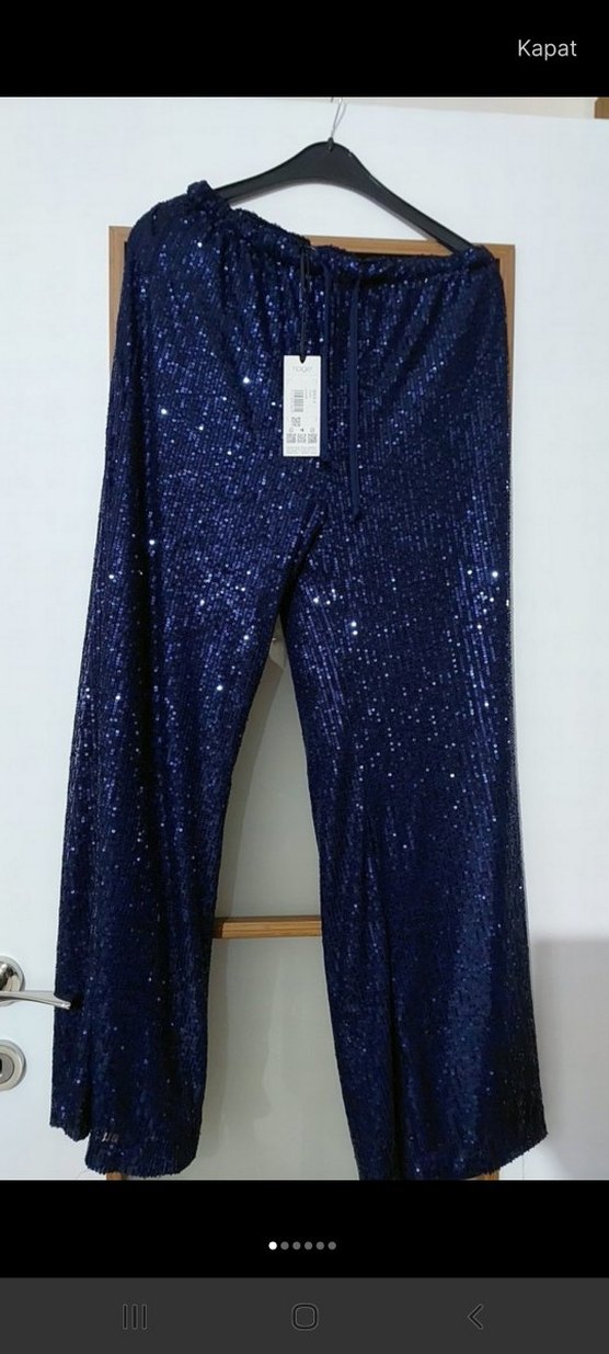Parlak payetlerle süslenmiş, bol kesim, pantolon