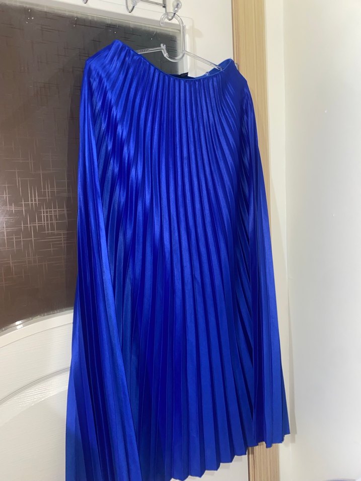 Parlak Mavi Piliseli Uzun Etek