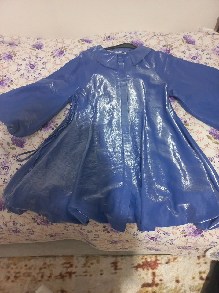Parlak mavi renkte, uzun kollu ve yakalı, bol kesim midi boy tunik Avant-garde goth tarzını yansıtan parlak yüzeye sahiptir.