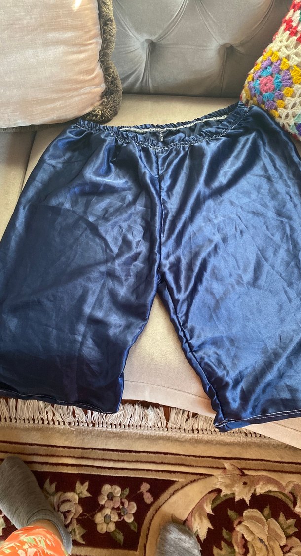Parlak mavi kumaştan, salaş kesim ve drapeli erkek pijama altı, rahat ve gevşek bir stil sunar.