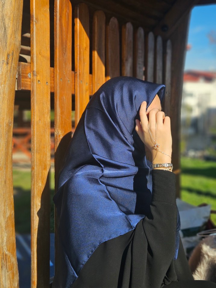 Parlak Mavi Saten Kadın Eşarp Janjan Özel gün eşarbı