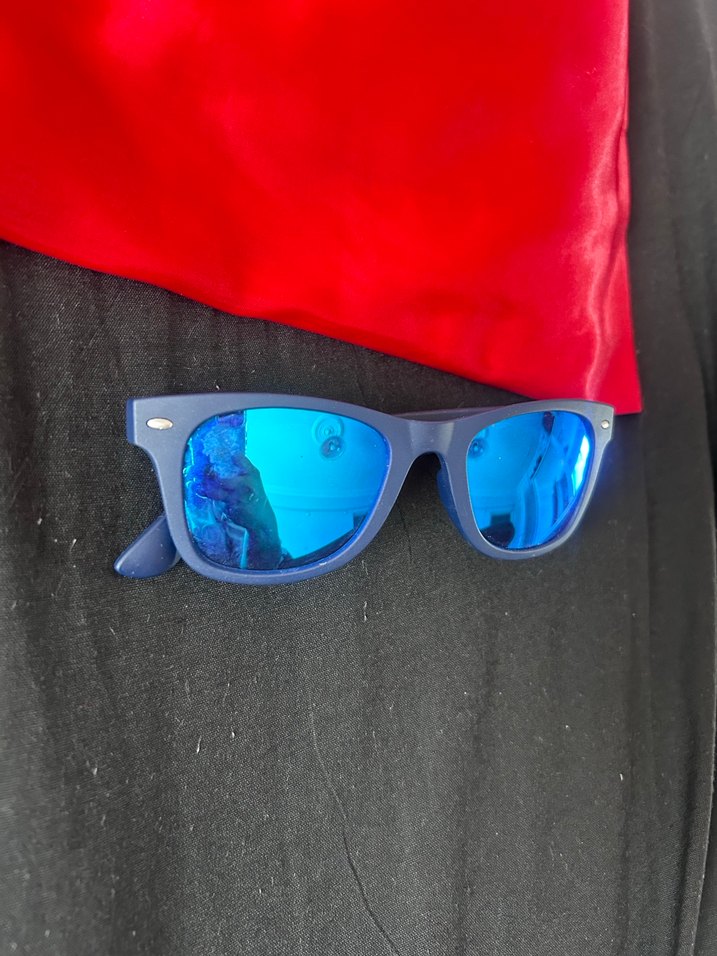 Parlak mavi renkli, renkli sokak tarzı kadın güneş gözlüğü. Rock punk havası yansıtıyor. Cesur bir görünüm için uygun.