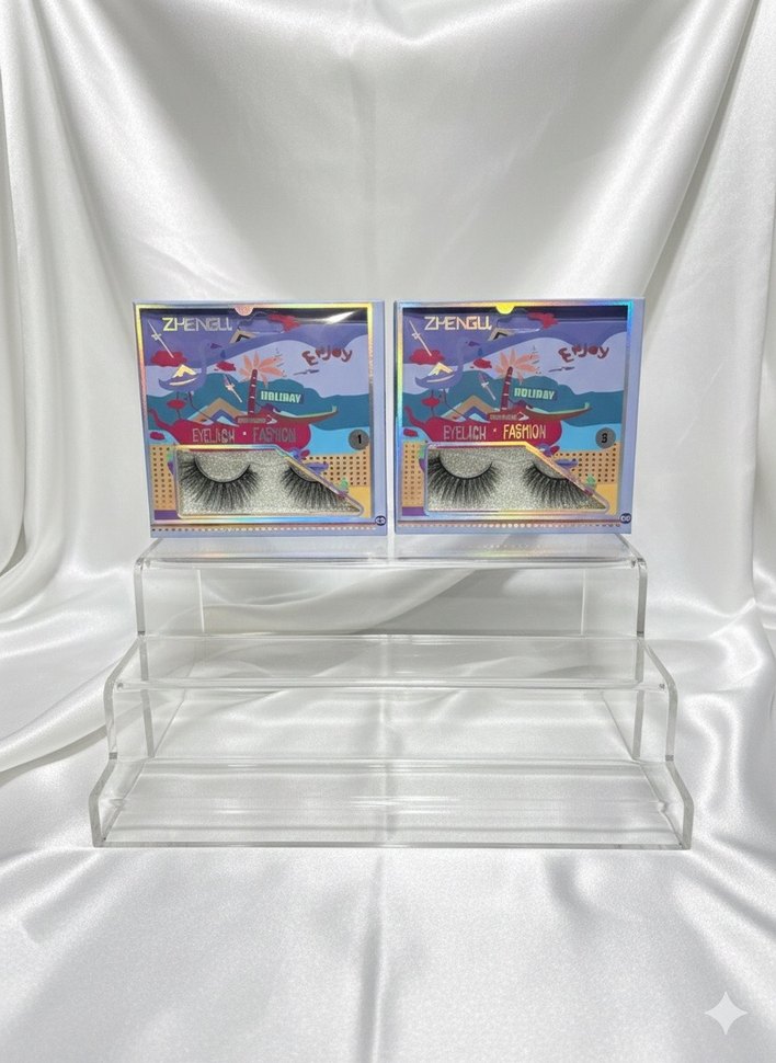 Canlı renk ve hacimli parlak mavi takma kirpikler, gözlerinizi ön plana çıkarır.
