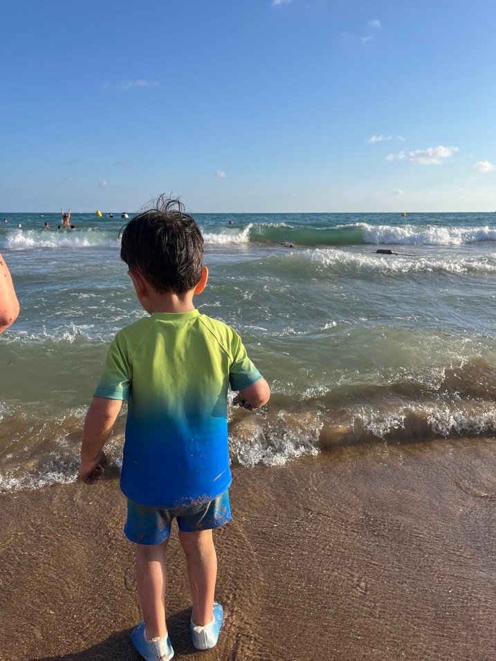 Parlak mavi tie-dye desene sahip kısa kollu erkek mayo, plajda rahat kullanım sağlar.
