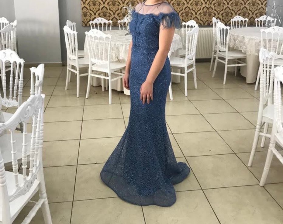 Parlak Mavi Uzun Abiye Elbise