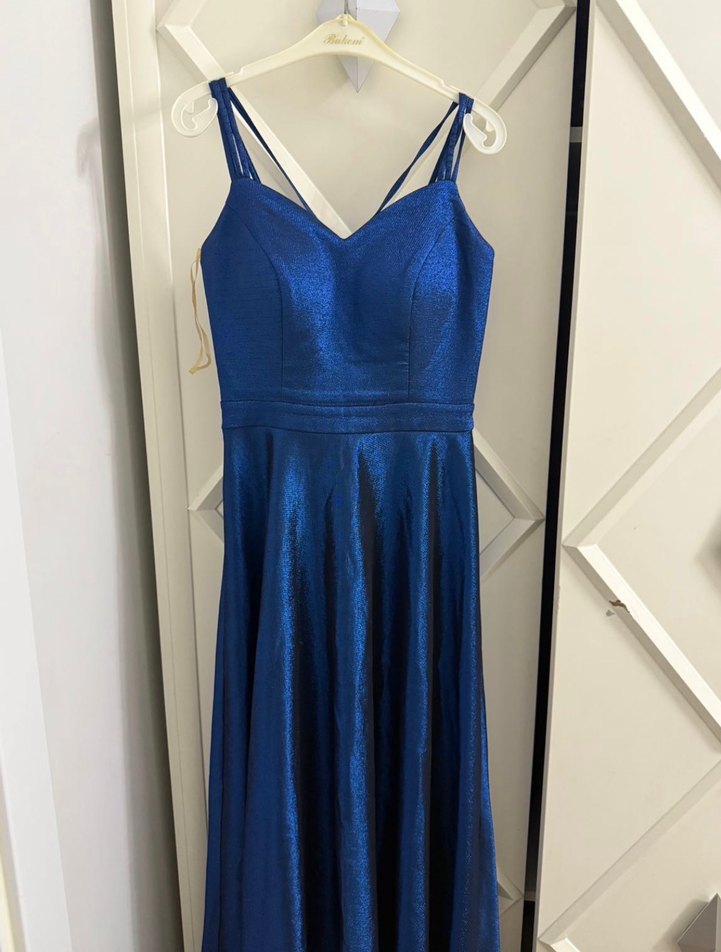 Parlak Mavi Uzun Askılı Kadın Abiye Elbise