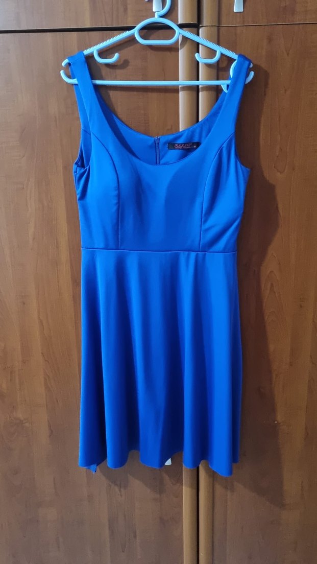 Parlak mavi kumaştan, V yakalı ve kolsuz, beli oturan midi elbise. Drapeli detaylarıyla minimalist ve cesur bir tarz sunar. M BEDENDİR MARKASI TEMSİLİDİR ÜRÜN BİR KERE DÜĞÜNDE GİYİLMİŞTİR