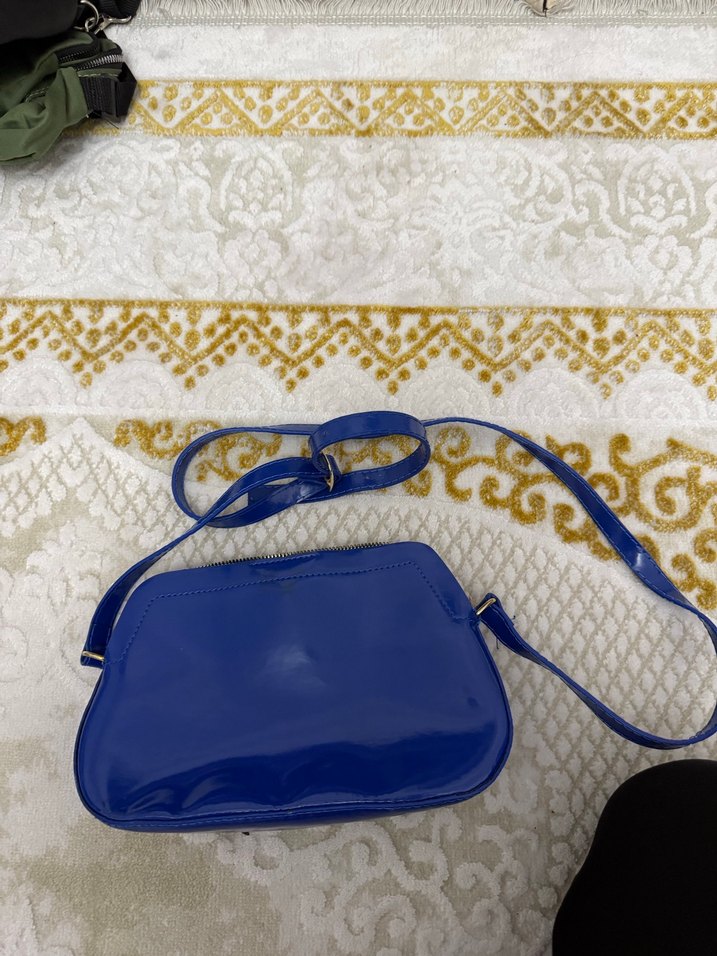 Parlak mavi yılan derisi desenli, fermuarlı kadın çantası. Sentetik kumaştan, Paris sokak modası ve bohem tarzını yansıtır.