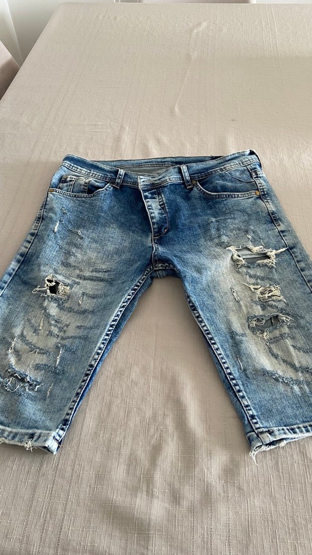 Parlak Mavi Yırtık Mini Denim Erkek Şort