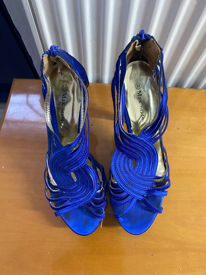 Parlak Mavi Yüksek Topuklu Kadın Gece Ayakkabısı