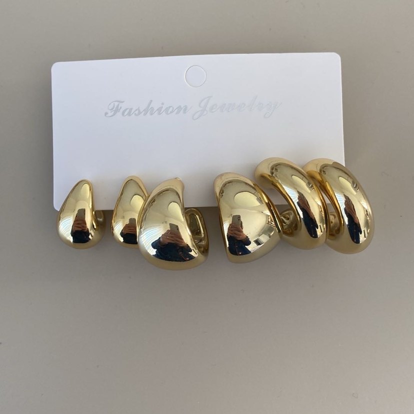Parlak altın renkli midi uzunlukta, desen içermeyen modern kadın küpeleri. Günlük kullanıma uygun, Paris esintili ve trend belirleyici tarzlar için ideal. ✨