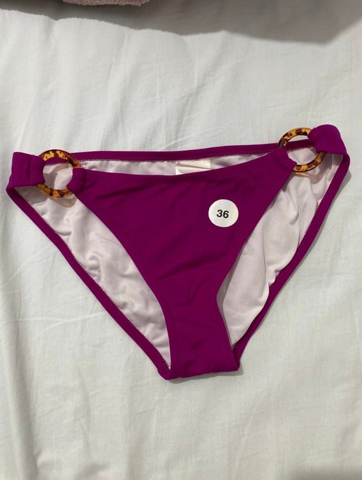 Parlak mor renkte, bağlamalı detaylı ve elastik yapıda bikini altı. Halkalı tasarımıyla cesur bir plaj stili sunar. ️