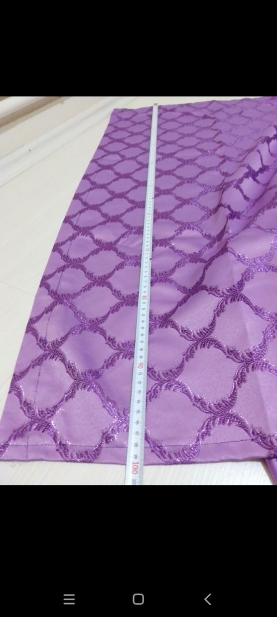 Parlak mor renkte, desenli fon perde kumaşı genişlik 100 cm uzunluk 2, 50 cm
