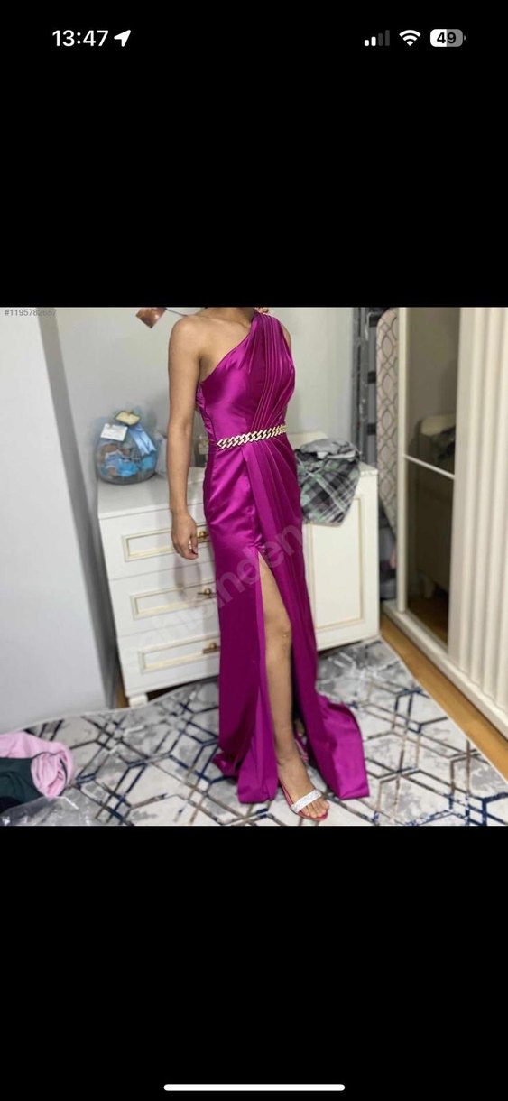 Parlak Mor Drapeli Uzun Abiye Elbise