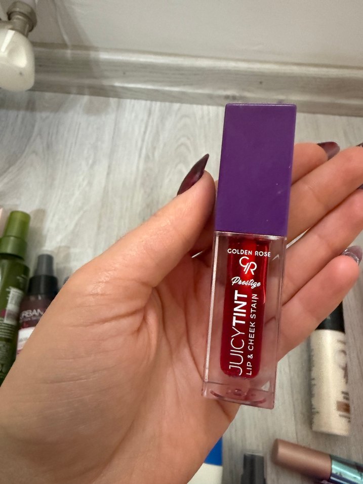 Golden Rose Juicy Tint, parlak mor renkte dudak ve yanak parlatıcısıdır. Canlı renk ve parlak bir görünüm sağlar.
