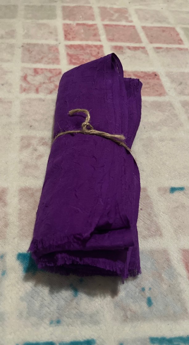 Parlak mor renkte, saten dokulu ve drapeli kadın şalı, bohem tarz için uygundur.