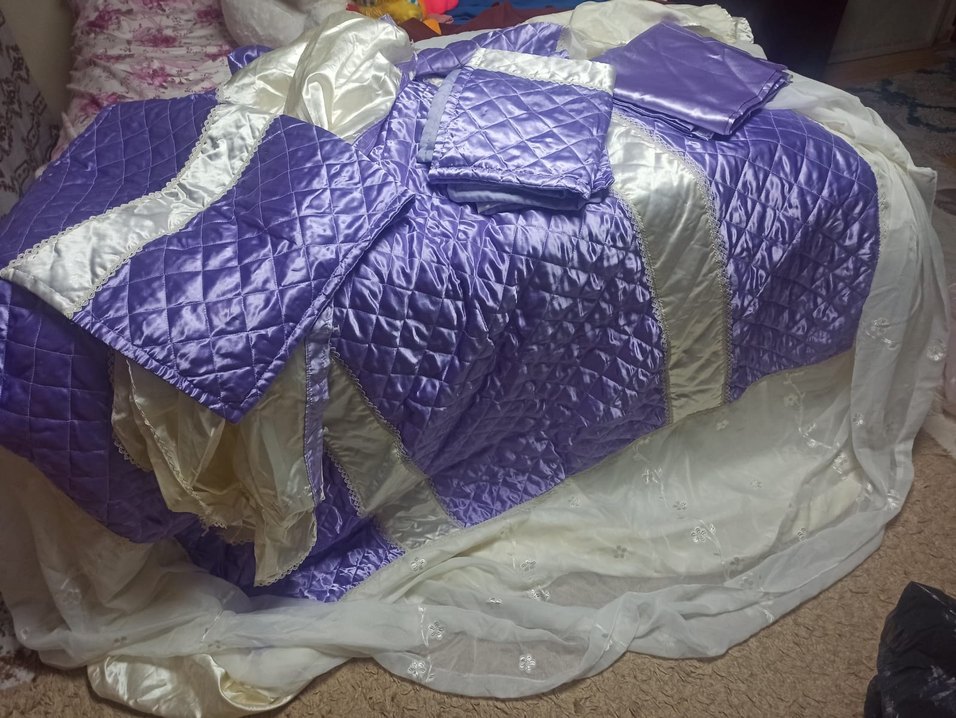 Parlak mor renkte, kapitone desenli ve yumuşak dokulu yatak örtüsü, yatak odanıza canlılık katar. ️
