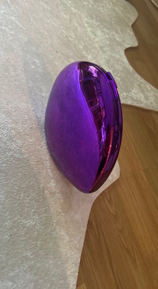 Makyaj süngerini koruyan ve temiz tutan parlak mor renkli taşıma kutusu.