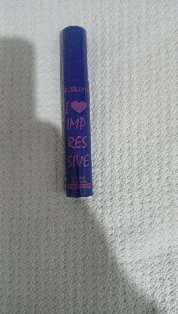 Göz makyajı için parlak mor renkte maskara. Ambalajında 'SIVE, RES, IMP' yazıları bulunur.