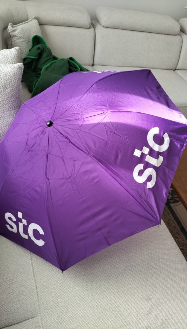 Parlak mor renkte, pileli tasarımlı ve 'stc' logosu bulunan kadın şemsiyesi, avant-garde ve sokak stili etkilerini yansıtıyor.