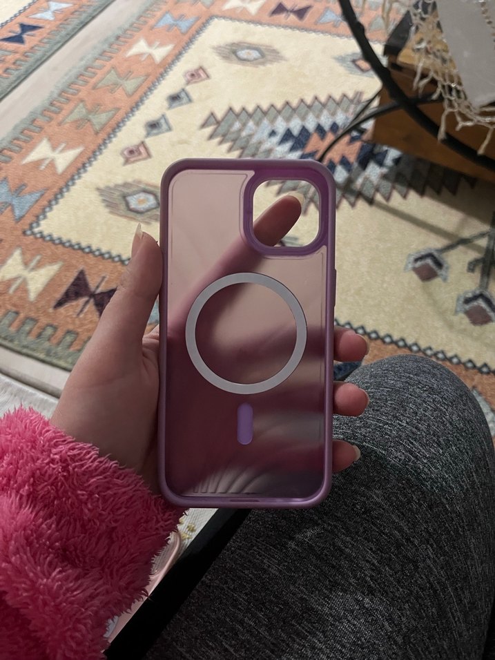 Parlak koyu mor renkte, arkasında dairesel desen bulunan şık ve tarz telefon kılıfı.İphone 13 Telefon kılıfı bazı yerlerinde sararmalar mevcuttur.